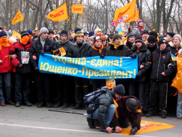 імені Тараса Шевченка, 23 листопада 2004 р. Students' meeting near Kyiv National Taras Shevchenko University, the 23d of November 2004 |