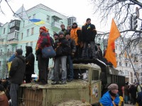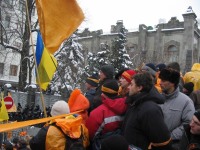 скандують "Міліція з народом!", "Воїни, кидайте щити! Ми ваші брати!"(AVI 2.8 Мб)